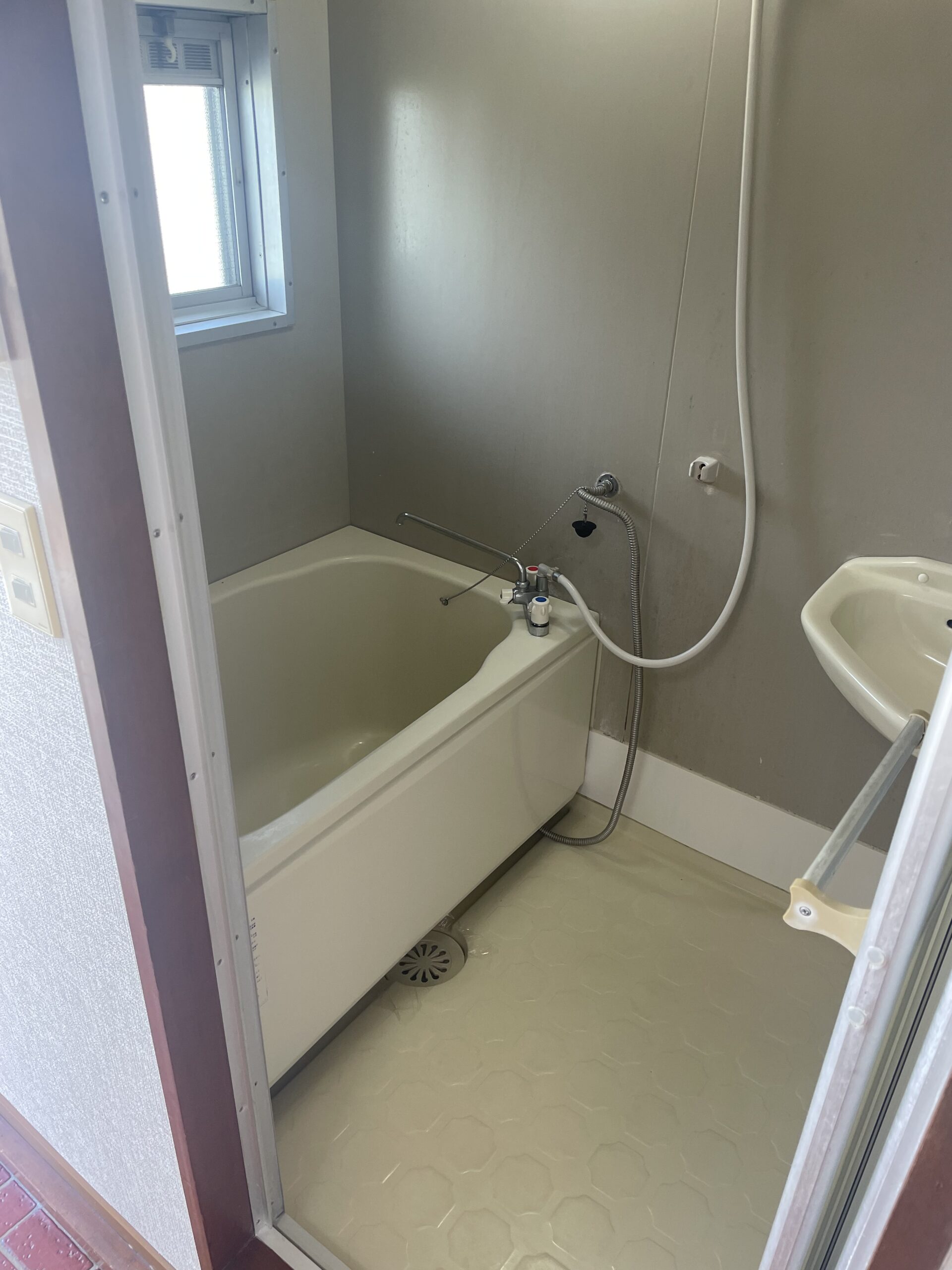 ■エアコン付、2口コンロ対応キッチン、洗濯機中置、バストイレ別室